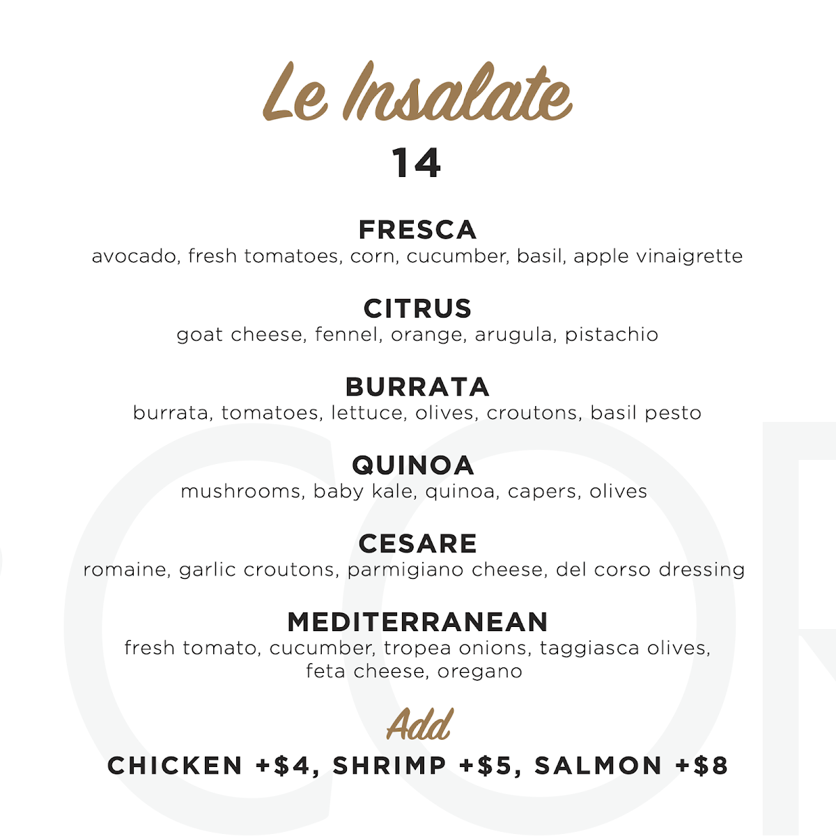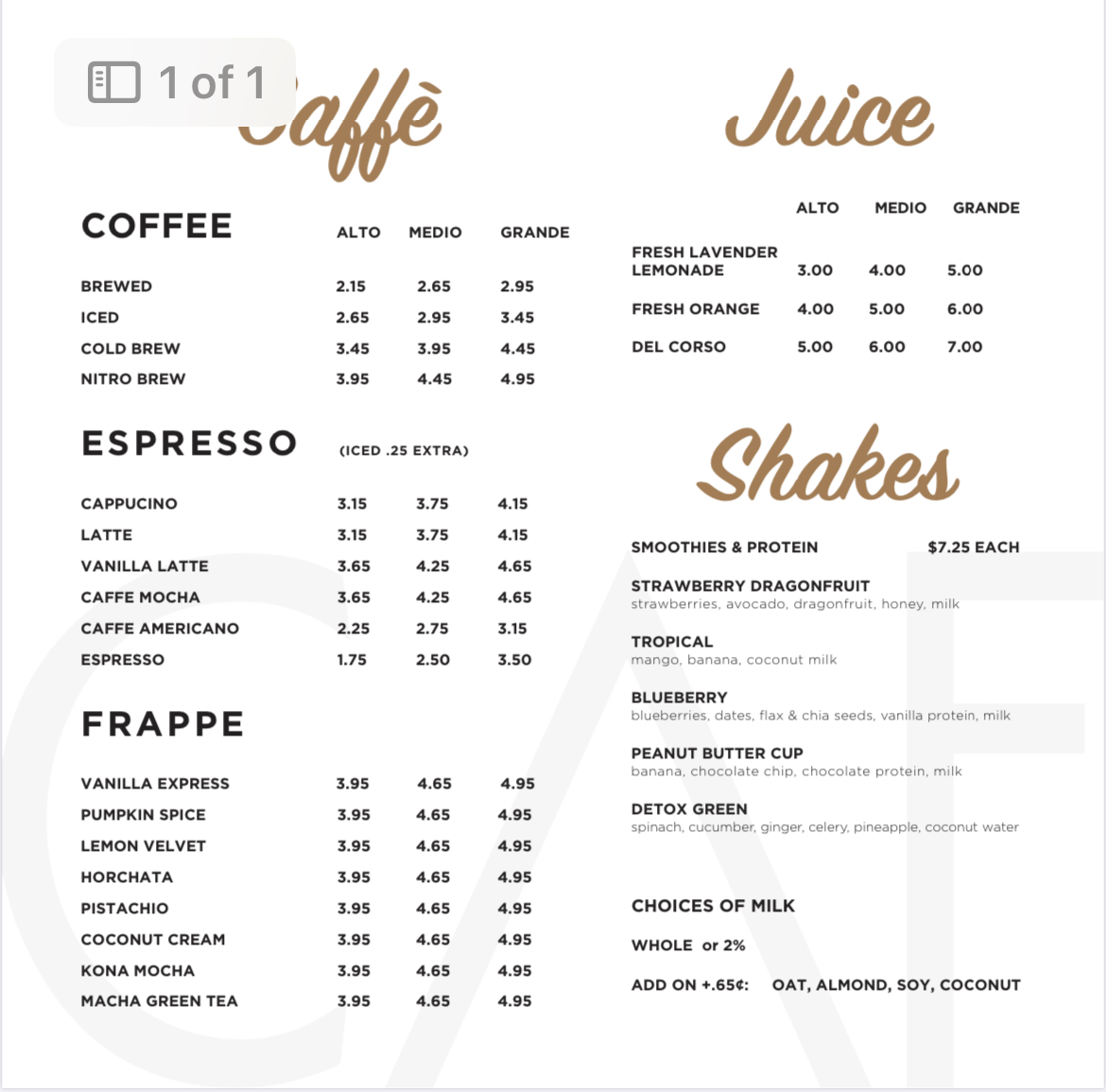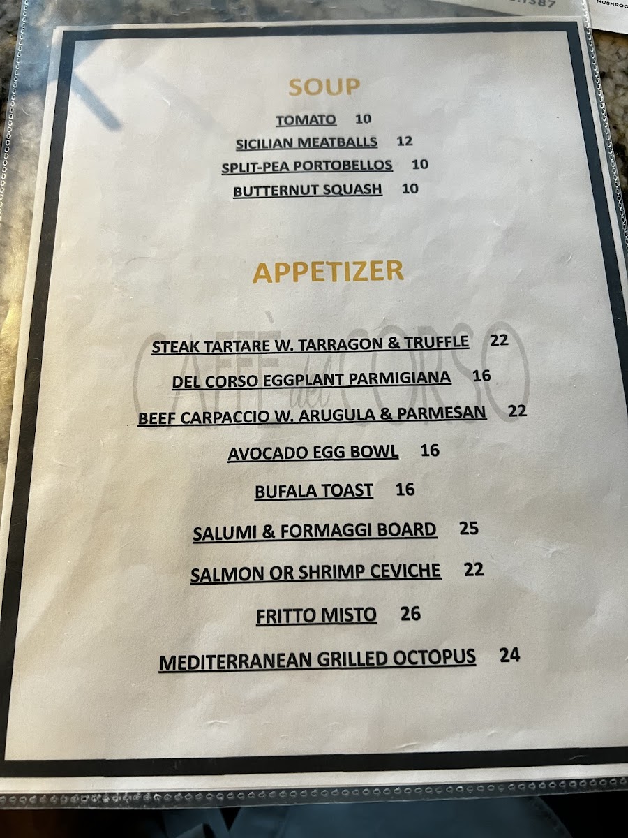 CAFFÈ del CORSO Menu
